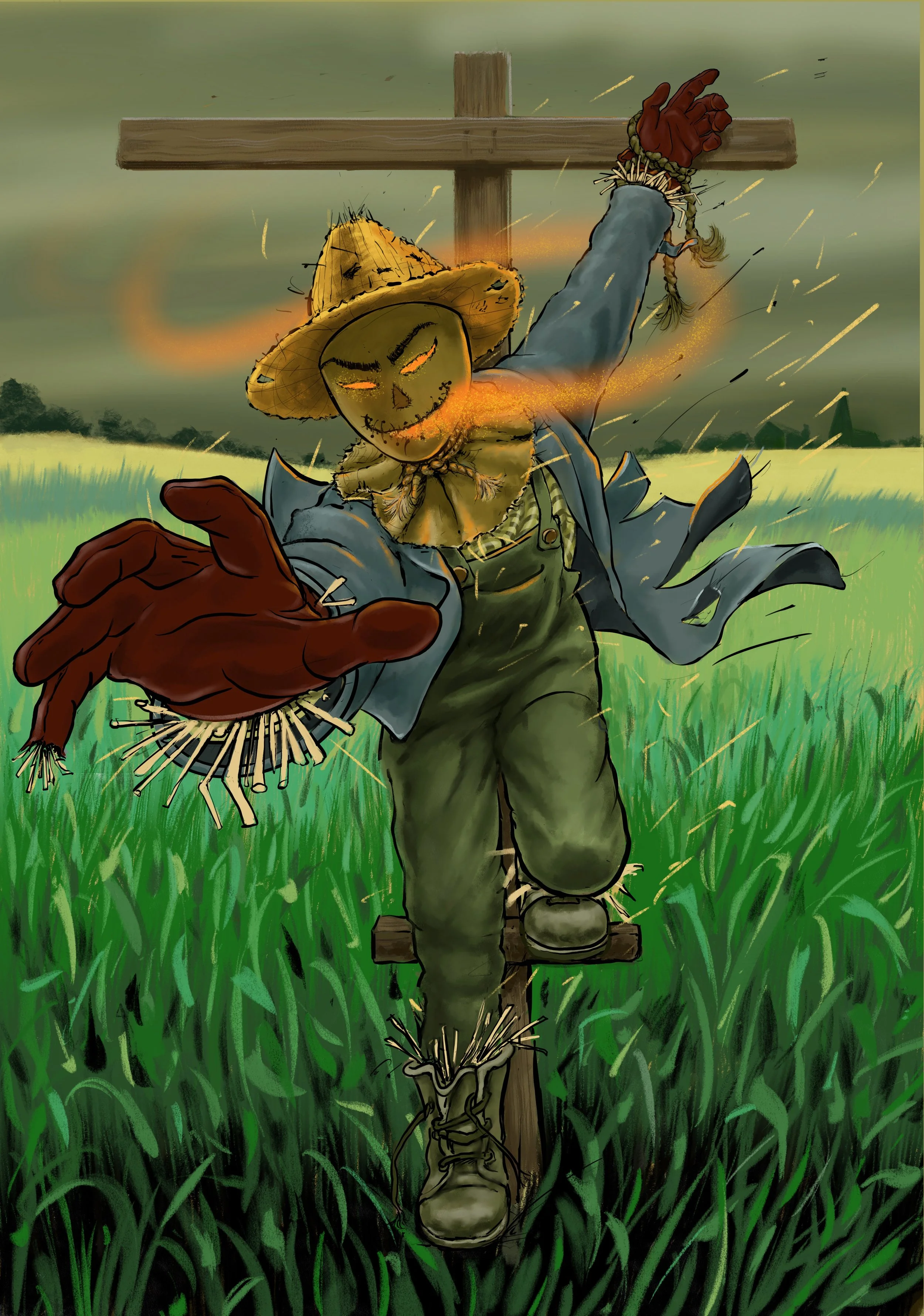 Charley retrieved all the money from around the farm and stuffed it into a small bag along with some ropes, food and a few ales. Then, as the church bells rang to indicate the end of the service, he casually strode down to the far paddock. On the edge of the field amongst the trees, Charley took off his clothes, added them to the bag, retrieved the ropes and stashed the bag in a thicket. He then walked back to the centre of the paddock, where there was positioned a huge scarecrow, dressed in Charley’s old cast off clothes, clothes which Charley now carefully began dressing himself in. He emptied the head of straw and put the hessian sack over his own, tying it around his neck. He knotted another length of rope around his left wrist, attaching it to the cross bar. By looping a slip knot over his right wrist and pulling one end with his teeth he was able to secure his right arm to the other side of the cross. Charley knew his knots alright.